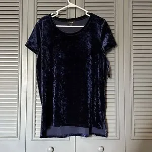 NWT Lord and Taylor : Blue Crushed Velvet Blouse - L