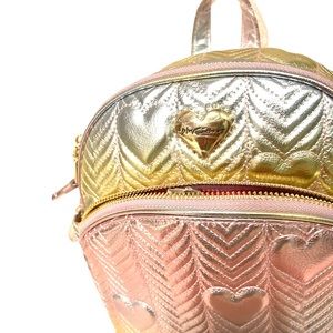New Betsey Johnson Metallic Quilted Hearts Backpack