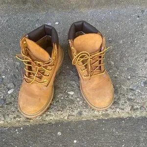 Cool 😎! Timberland Boots are in good shape.Shows some wear on toe. Barely noticeable or worn! Washed & ready ! Perfect boots for that active toddler!