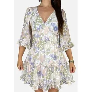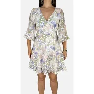 DOTTI Pastel Floral Print Bell Sleeve Backless Ruffle Trim Mini Dress Size AU 12