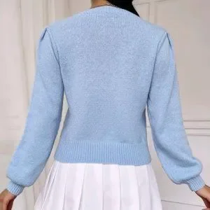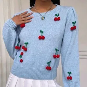 Lantern Sleeve Cherry detailed Knit Sweater Top