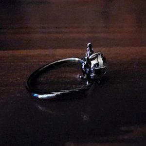 Made of Sterling Silver with "925" imprinted on the inside of the 18k black gold plating. Black Diamond Crystal set in the center.