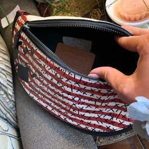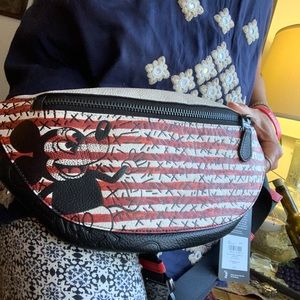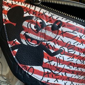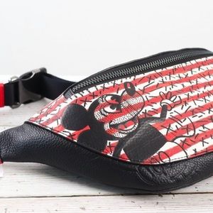 Authentic COACH Pebbled leather Mickey mousse Keith Disney 2 zips belt bag
