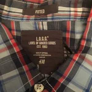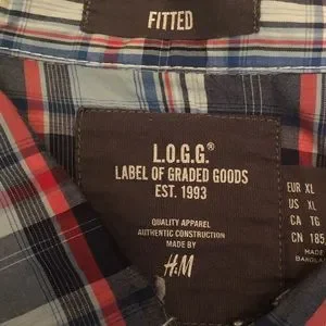 H&M L.O.G.G. Fitted Plaid Long Sleeve Button Down Shirt red white blue size XL