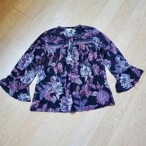 Lucky Brand Woman's Long Sleeve Floral Blouse Size S.