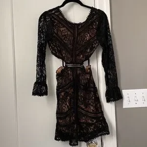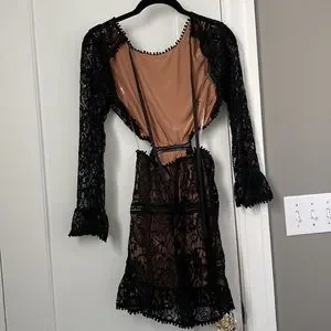 For Love & Lemons Emerie Lace Cutout Dress Black/Nude New without Tags Sz.XS
