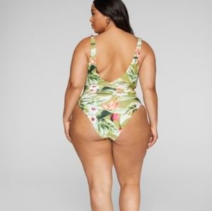 NWT FTF (Fashion to Figure) low-cut one piece swimsuit! Super sexy deep v-neck with a beautiful tropical print. Size 3 (equivalent to a size 3xl.)
