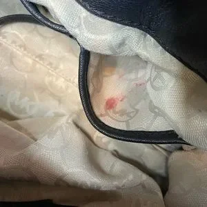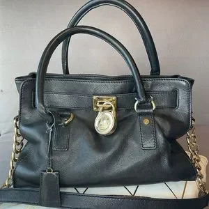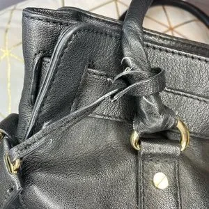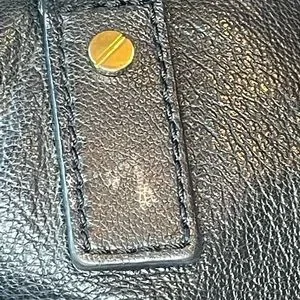Black and gold used satchel bag with shoulder strap, leather. Some marking on inner lining and some mild fraying on base of handle (pictured). Make an offer!
