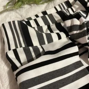 SKIRT HAS A TIE OVERLAY VERY FLATTERING ELASTIC WAIST EXCELLENT USED CONDITION GRAY/BLACK/BEIGE