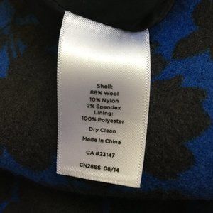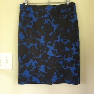 Talbots Wool Floral Pattern Pencil Skirt, Cobalt Blue/Black, Size 4P