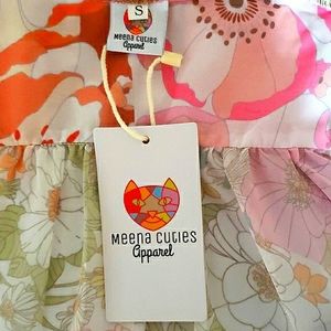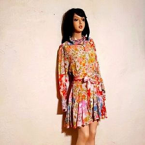 NWT Pastel Floral Boho Faux Silk Ruffled Long Sleeve Mini Dress MSRP $103