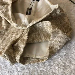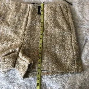 NWT Express High Waisted textured shorts in size 14 non stretch, side zipper closure fully lined, has side pockets. Tan and gold textured material. Super sleek and stylish. Vacay wear for a night out with heels, or keep it casual very versatile. Bundle and save