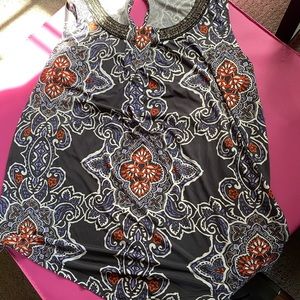 Sleeveless Top with Beaded Neckline Size M