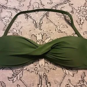Olive green bandeau bikini top with detachable halter strap. Back hook closure. Worn once. Excellent condition.