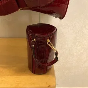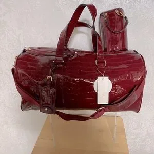 Crock embossed 2 in 1 duffle bag burgundy color small matching makeup bag and detachable shoulder straps 20x9 1/2 by 9 1/2