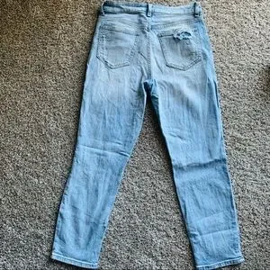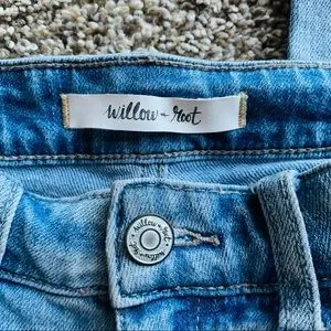 Willow and root denim from Buckle. Size 27, high-rise, mom fit, with destructed legs and back pocket. Rigid denim-98% cotton, 2% spandex. Great condition.
