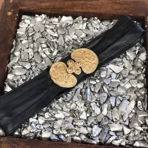 Vintage Boho Gypsy Gold Tone Metal Belt Faux Leather Black