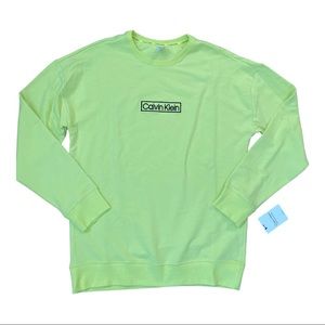 NWT Calvin Klein NEON Yellow Green SWEATSHIRT Lounge Shirt MENS Medium