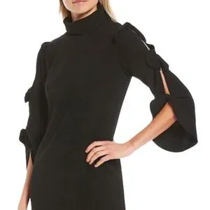 💥SOLD💥Alex Marie Nina Bow Sleeves Mock Neck Mini Dress Black Sz 2 NWT