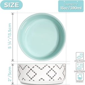 2 Blue or Pink Modern Ceramic Cat Bowl