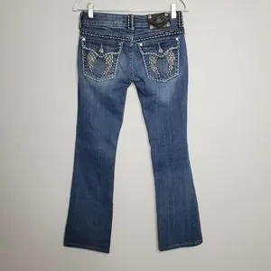 MISS ME • Y2K Crystal Wings Bootcut Jeans Sz 27