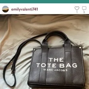 The REAL Marc Jacobs THE TOTE BAGS don’t have white letters or metal buttons on the corners.