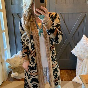 New Montana Western Long Cardigan Sweater Top / Tribal Native Aztec Yellowstone