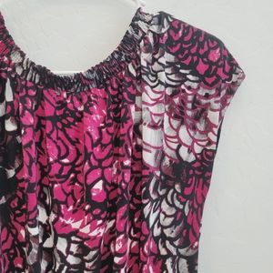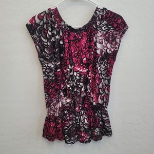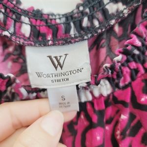 Worthington Pink & Black Blouse Top Women's Size Small. Stretch. Elastic neckline and hem. Abstract floral print.