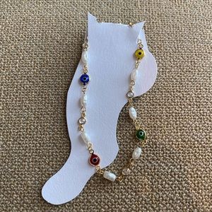 Gold Plated freshwater Pearl and Evil Eye Anklet