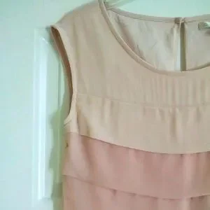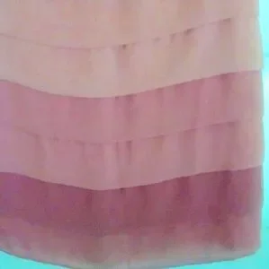 Peach Pink to berry ombre layered dress. Size 6. Fully lined with keyhole closure in back. Light and airy but not sheer. 33.5" long. 17" across bust.18.5" across hip.