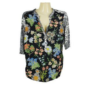 Anthropologie Tiny Effie Floral Popover Blouse Women's Size S Black Multicolor