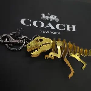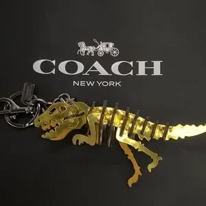 Rexy, the Coach dino, brings a rebellious attitude to a set of keys or a favorite bag. Crafted of Coach glovetanned leather, the charm is equipped with a key ring and a dogleash clip to attach to your bag or belt loop.