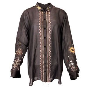 JOHNNY WAS / CALME WOMENS LONG SLIVE SILK FASHION BLOUSE