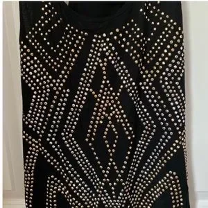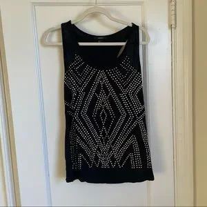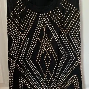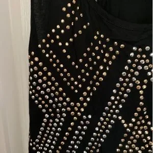 Forever 21 Top Large Black Stretch Racerback Scoop Neck Tank Studded with Gold and Silver