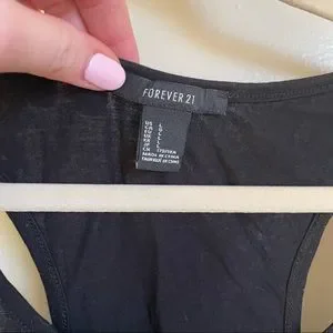 💥🎉HP🎉💥 Forever 21 Black Stretch Racerback Scoop Neck Tank Gold Silver Studs