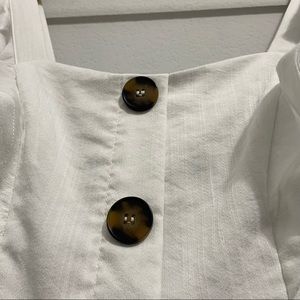 Aqua Dress Button Down Ruffle Sleeveless White Mini Womens XS