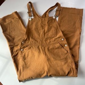 Gorgeous color, raw hem overalls. One button was resewn and reinforced. Otherwise excellent condition.