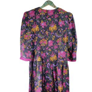 Vintage Chel'sea Floral Midi Dress w/ Draped Bow Neckline, Sz 18WP