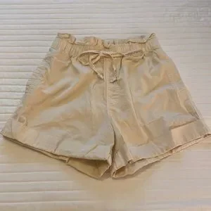 Abercrombie & Fitch Cream High-Waisted Paperbag Shorts