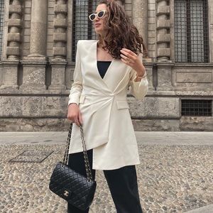 Zara Ecru Draped Blazer Dress