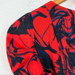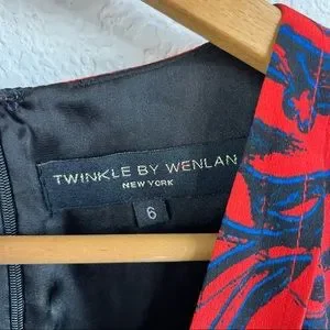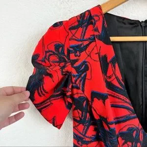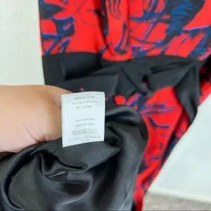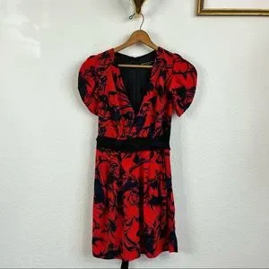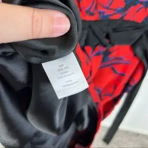 Twinkle by Wenlan Red Silk Floral Ruched Tie V Neck Dress