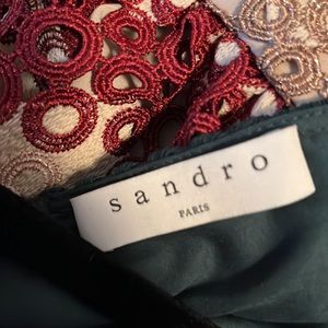 Sandro V-neck Geometric-lace Mini Dress In Green