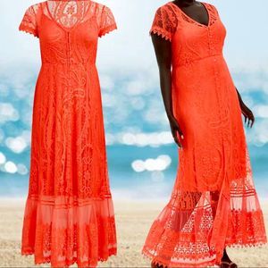Torrid Lace Coral Button Front Skater Maxi Dress Sizes: 1XL 2XL 3XL NWT