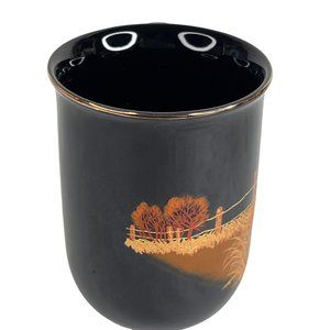 2 Otagiri Owl Mugs Black Gold Japan Vintage Set Coffee Cup Metallic Gold Trim
