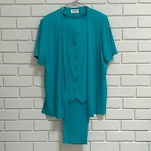 Alfred Dunner Teal 2 Piece Textured Pants Suit. Size 16 Top / 14 Pants. NWOT