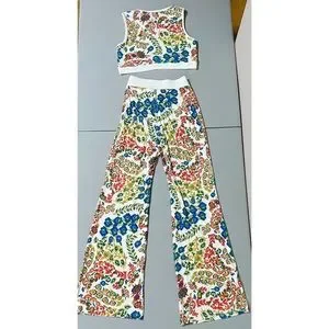 Cider White Floral Crop Top and Pants Matching Set — Two Separate Pieces Included (Shirt: Size M and Pants: Size XS) — Option to buy separately (separate posts) or as set (this post) 🌷 #cider #floral #matchingset #matching #set