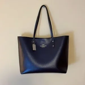 Coach Town Tote Metallic Cadet Blue Pebbled Leather New NWOT
