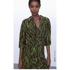 NWOT ZARA ANIMAL PRINT KNOTTED SHIRT BLACK / GREEN