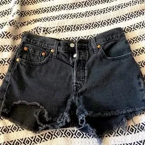 Black denim Levi 501 cut off shorts