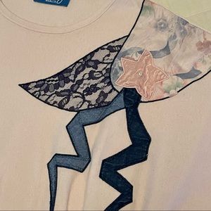80s 90s Y2K Pink shirt with dolman sleeves & patchwork appliqué True Vintage